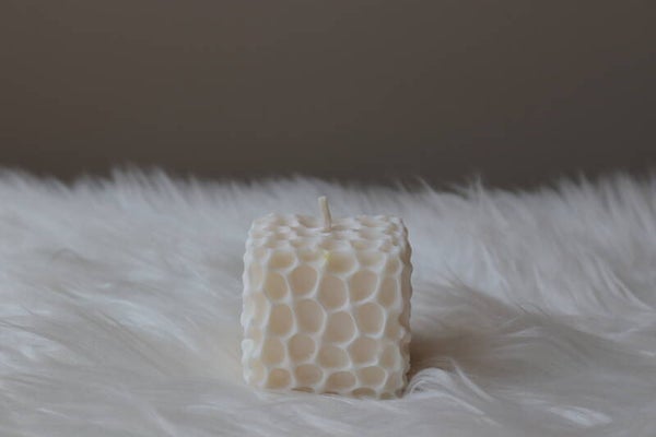 Laat je betoveren door de zachte charme van onze honingraat kaars - een unieke handgemaakte kaars met een speelse structuur die doet denken aan een honingraat.