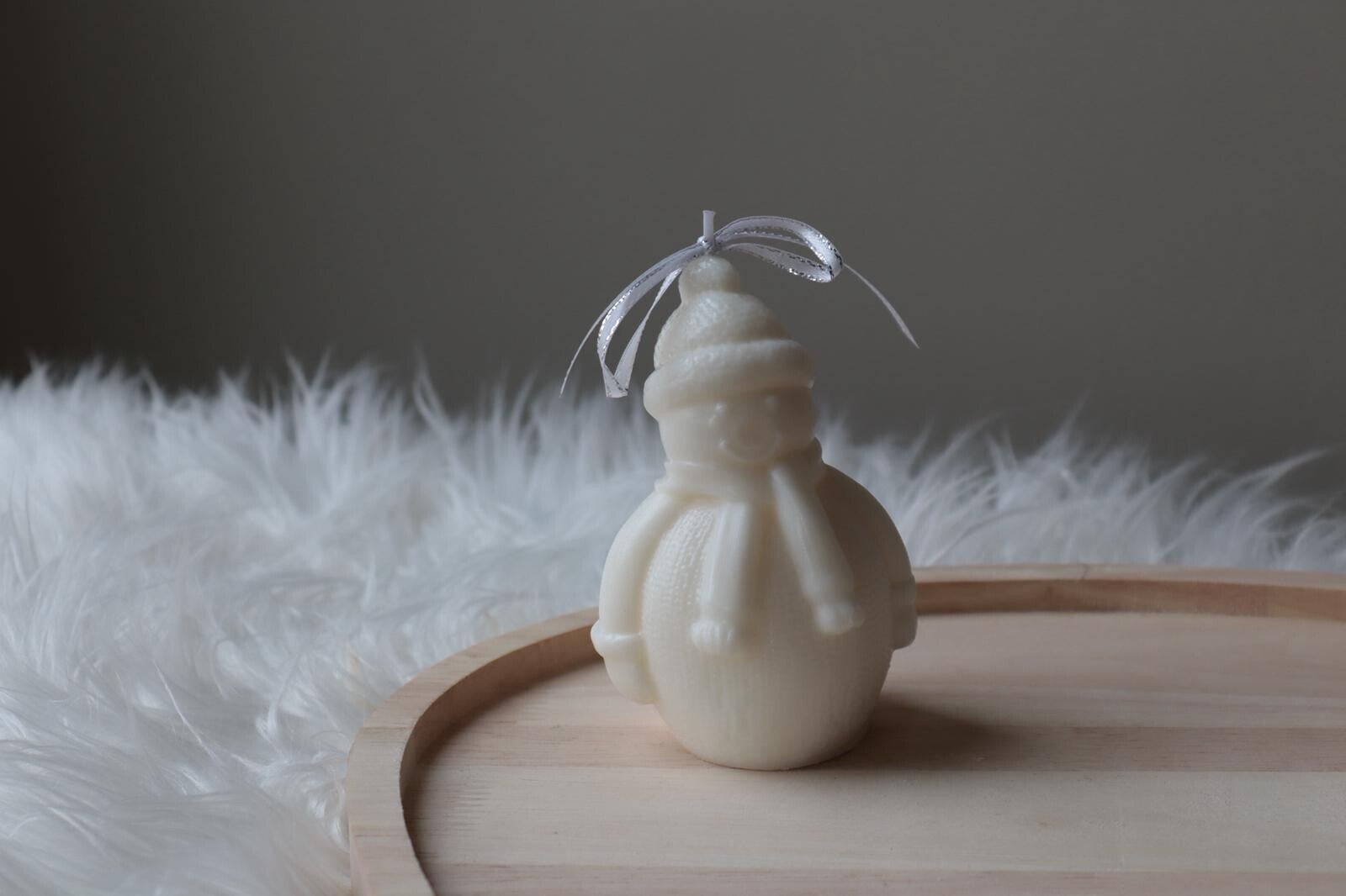 Een vrolijke sneeuwpop die doet denken aan frisse winterdagen en kinderlijk plezier. Een speelse toevoeging aan elke kersttafel.