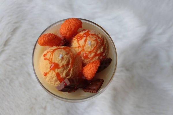 Breng een vleugje zoete verleiding in huis. Deze speelse kaars lijkt net een heerlijk dessert, romige “ijsbolletjes”, gedecoreerd met sappige saus en charmante details. Perfect als eyecatcher in je interieur of als uniek cadeau.